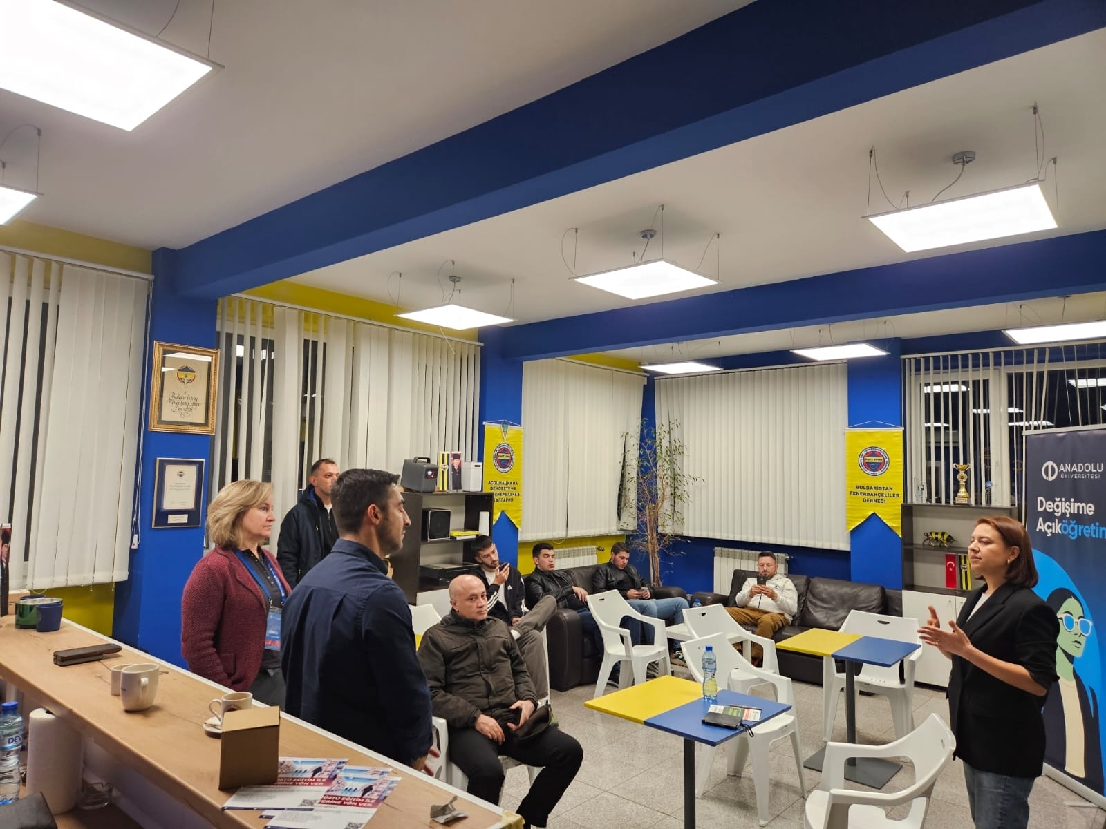 Sofya, 19 Ekim 2025 — Bulgaristan Fenerbahçeliler Derneği lokalinde düzenlenen bilgilendirme toplantısına Anadolu Üniversitesi Açıköğretim Fakültesi Yurtdışı Programları temsilcileri katıldı. Etkinlikte T.C. Sofya Büyükelçiliği Eğitim Müşaviri Mehmet Selim Varınca, Anadolu Üniversitesi Yurtdışı Programları Bulgaristan Temsilcisi Fahriye Emin ve Prof. Dr. Müjgan Yazıcı ile dernek üyeleri bir araya gelerek programa ilişkin kapsamlı bilgilendirme aldı ve sorularını yöneltti.