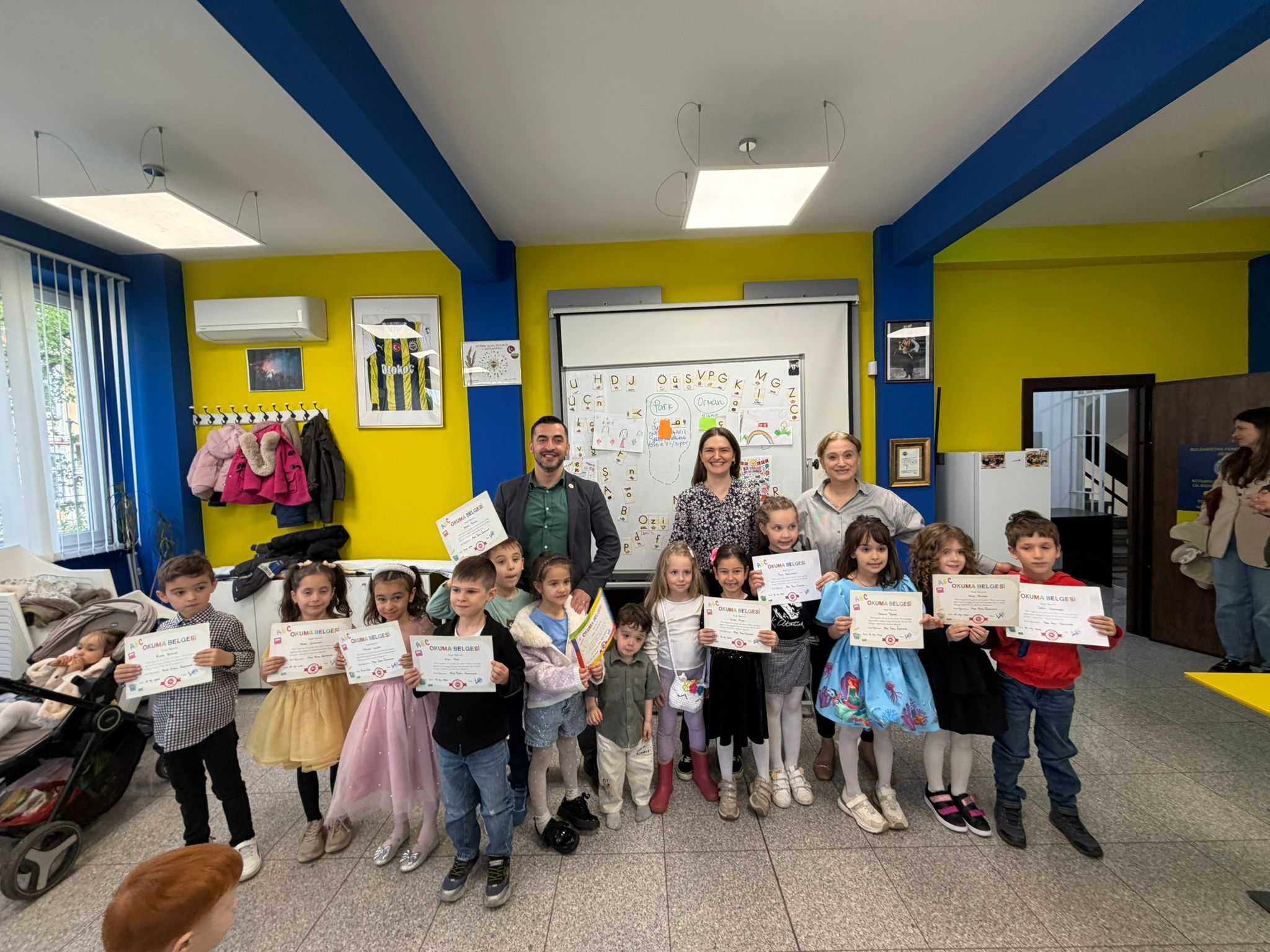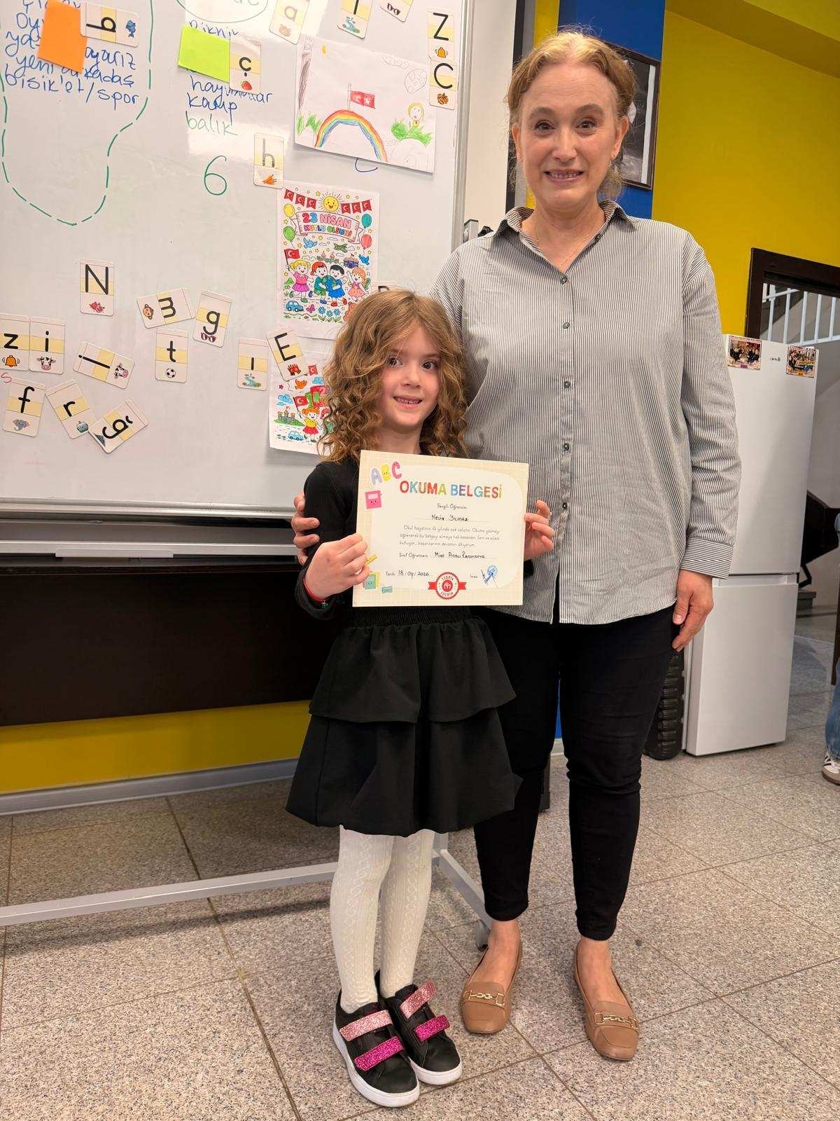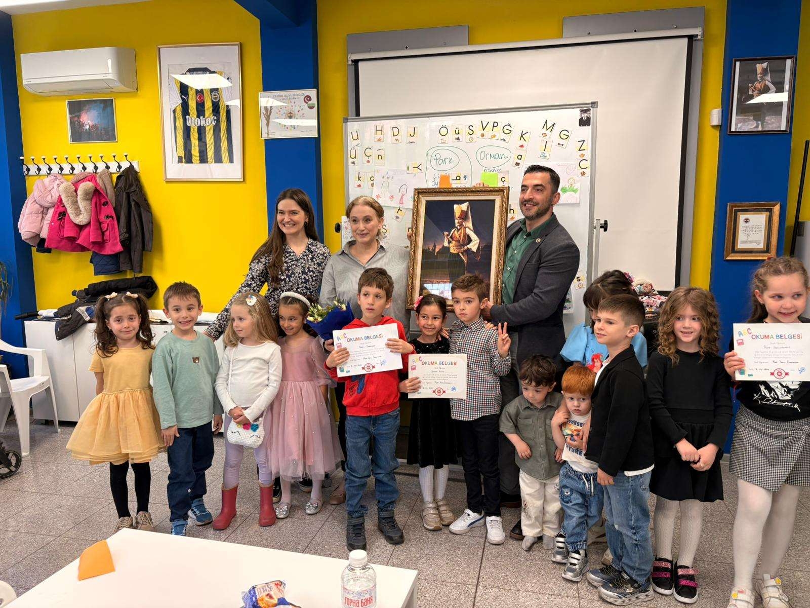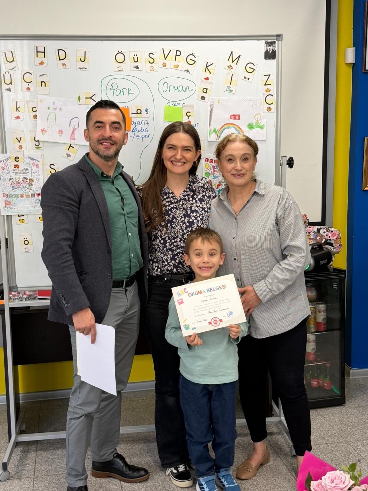 Velilerimizin ve üyelerimizin yoğun katılımıyla düzenlenen törende, ilk yıl eğitim programını başarıyla tamamlayan öğrencilerimize Okuma Belgesi sertifikaları, Kurucu Öğretmenimiz Mine Adalı-Radoykova ve Kurucu Dernek Başkanımız Emir Buluş tarafından takdim edilmiştir.
