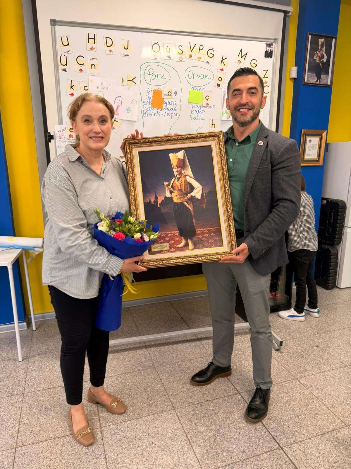 Sertifika töreni sonrasında konuşma gerçekleştiren Dernek Başkanımız Emir Buluş, Türkçe ve Türk kültürü eğitimlerine gösterilen yoğun ilgi için tüm velilerimize teşekkür etmiş, derneğimize duyulan güvenin kendileri için büyük bir sorumluluk ve motivasyon kaynağı olduğunu ifade etmiştir. Başkan Buluş ayrıca, Türkçe Kulübümüzün kurucu öğretmeni Mine Adalı-Radoykova’ya teşekkür ederek kendisine bir buket takdim etmiş; Mustafa Kemal Atatürk’ün 1914 yılında Sofya’da askerî ataşe olarak görev yaptığı dönemde yeniçeri kıyafetiyle çekilmiş fotoğrafından oluşan özel bir tabloyu hediye etmiştir.